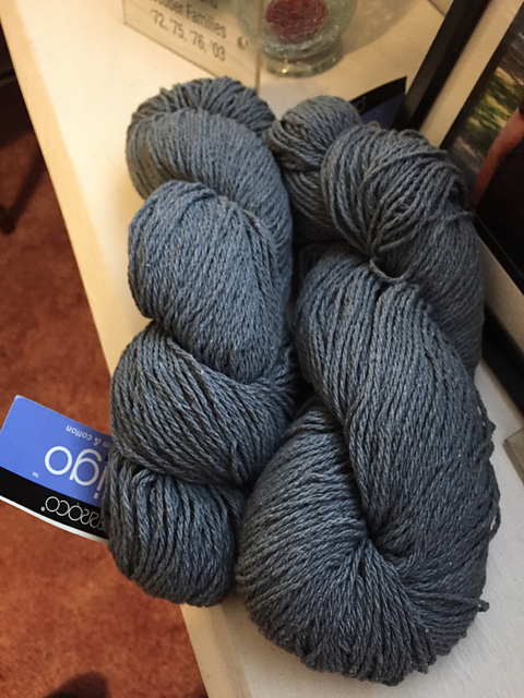 I love the updated vintage feel to this cardigan. I will take a picture of the in progress sweater later when I have the sweater divided for the sleeves and body. Right now it looks like a long needle with a lot of knit stitches on it. My cotton yarn is Indigo by Berroco. It is a recycled cotton yarn. I love the old blue denim color.